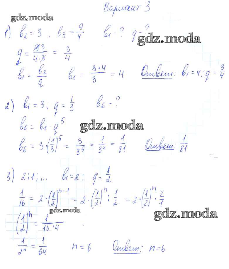 ОТВЕТ на задание № вариант 3 Самостоятельные работы по Алгебре 9 класс Александрова УМК Базовый уровень