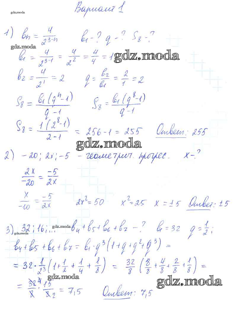 ОТВЕТ на задание № вариант 1 Самостоятельные работы по Алгебре 9 класс Александрова УМК Базовый уровень