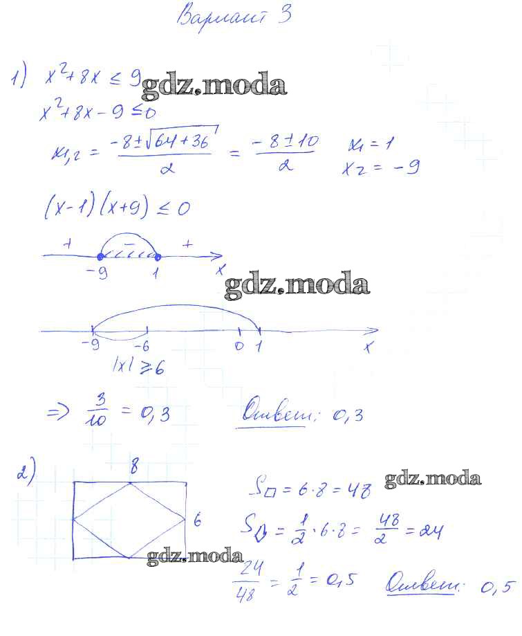 ОТВЕТ на задание № вариант 3 Самостоятельные работы по Алгебре 9 класс Александрова УМК Базовый уровень