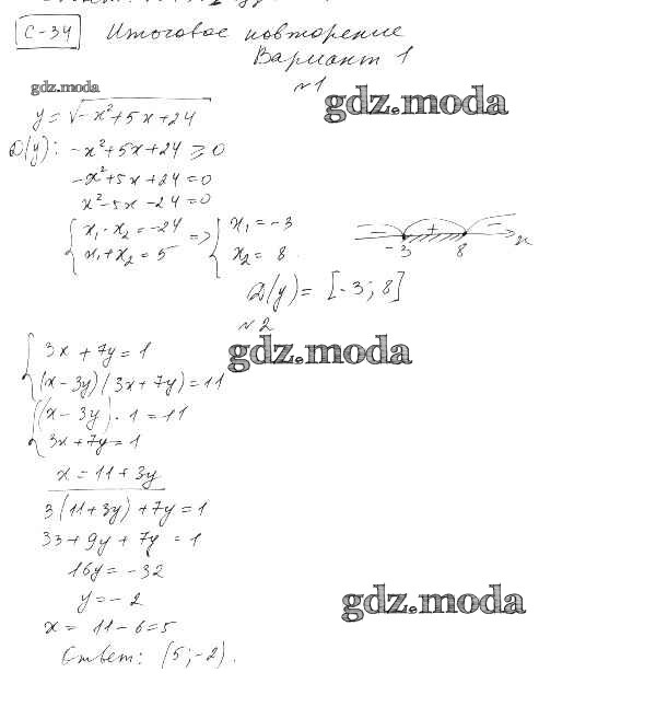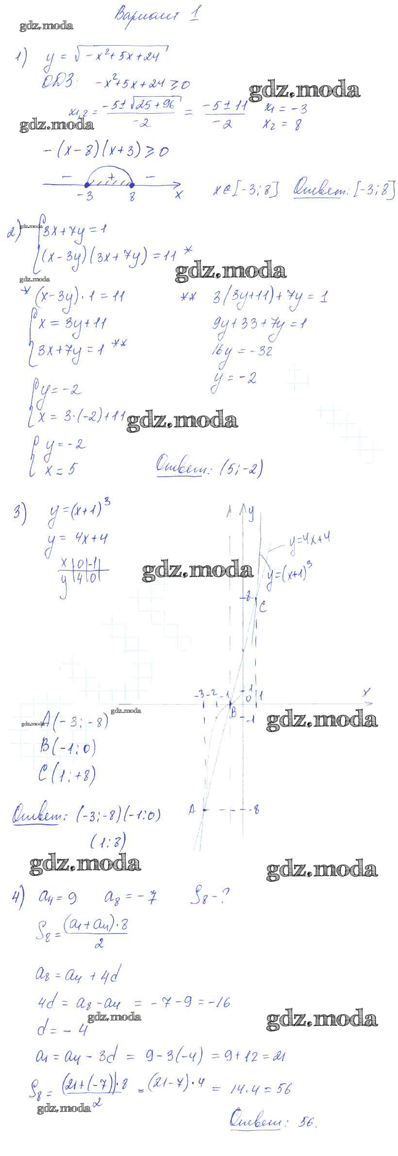 ОТВЕТ на задание № вариант 1 Самостоятельные работы по Алгебре 9 класс Александрова УМК Базовый уровень
