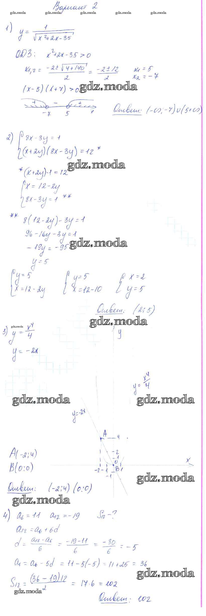ОТВЕТ на задание № вариант 2 Самостоятельные работы по Алгебре 9 класс Александрова УМК Базовый уровень