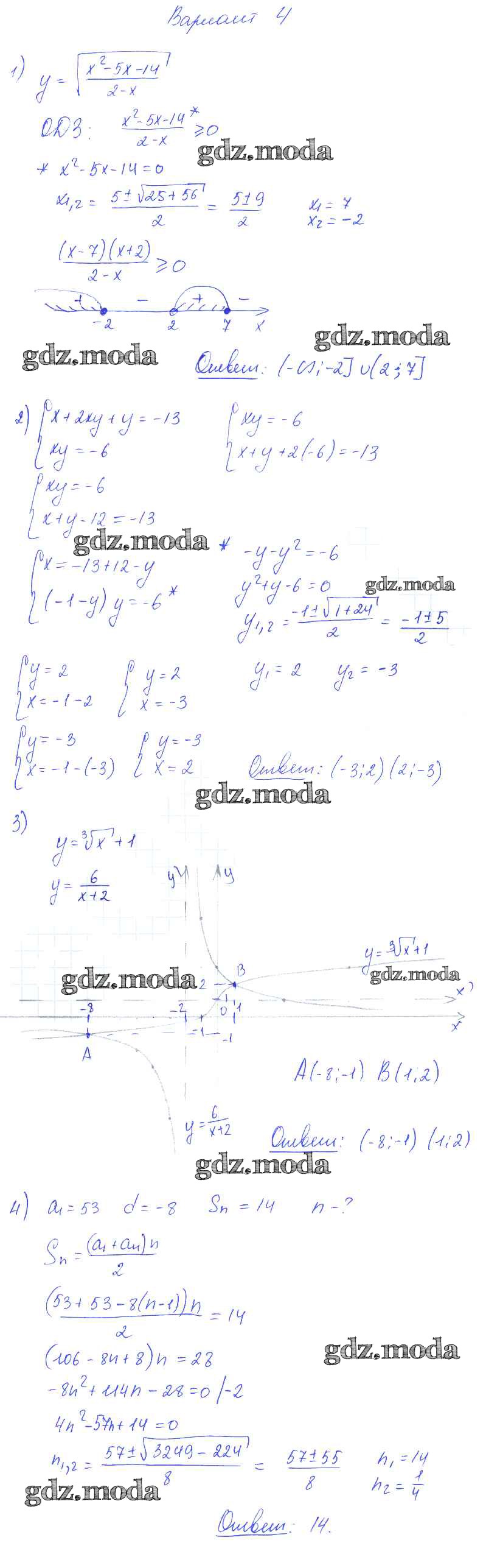 ОТВЕТ на задание № вариант 4 Самостоятельные работы по Алгебре 9 класс Александрова УМК Базовый уровень