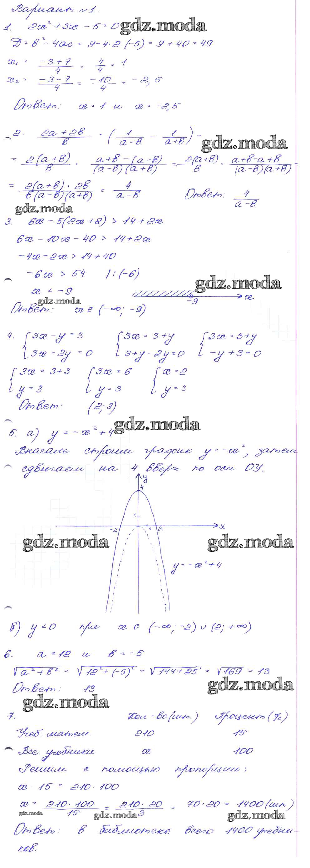 ГДЗ решение к заданию № Вариант-1 Алгебра 9 класс сборник заданий Кузнецова Л.В. Дрофа 2008 ФГОС бесплатно на гдз.мода!