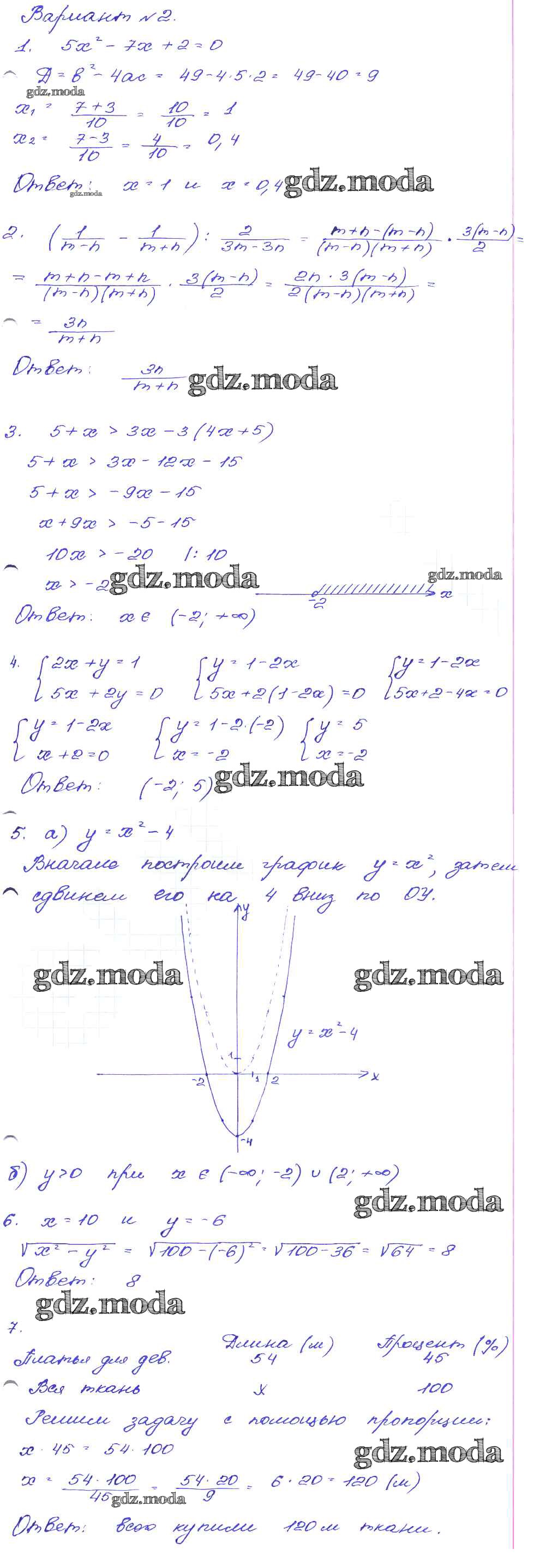 ОТВЕТ на задание № Вариант-2 Сборник заданий по Алгебре 9 класс Кузнецова