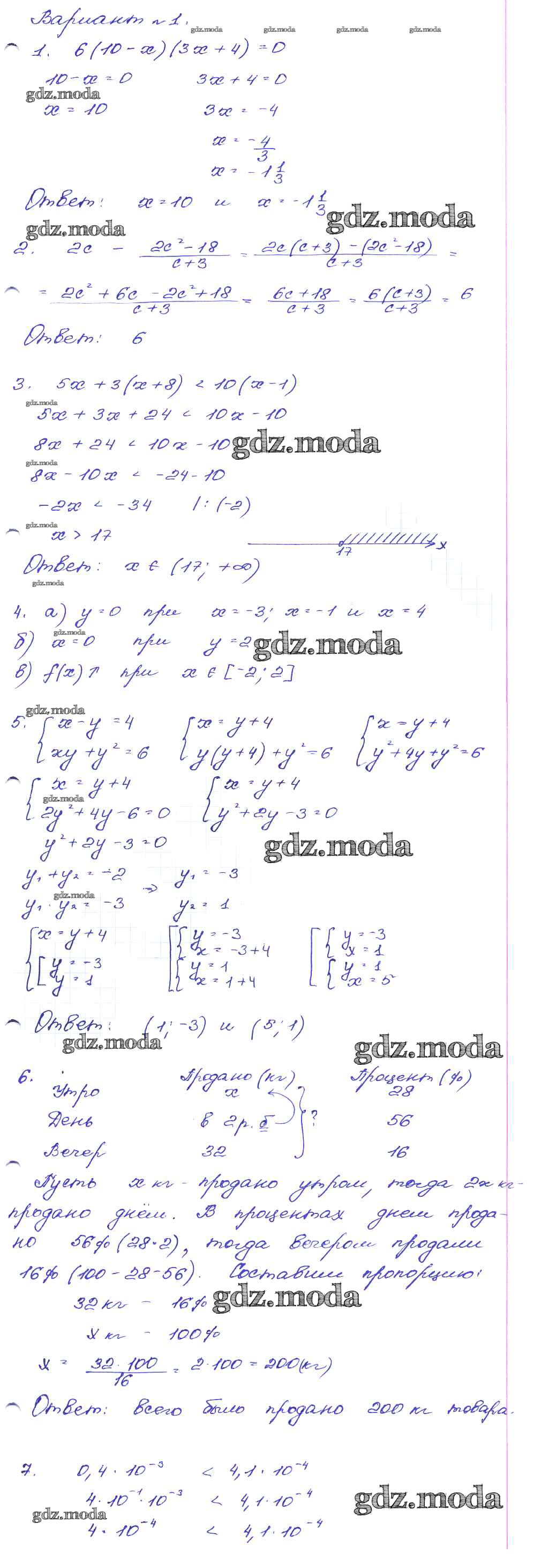 ГДЗ решение к заданию № Вариант-1 Алгебра 9 класс сборник заданий Кузнецова Л.В. Дрофа 2008 ФГОС бесплатно на гдз.мода!