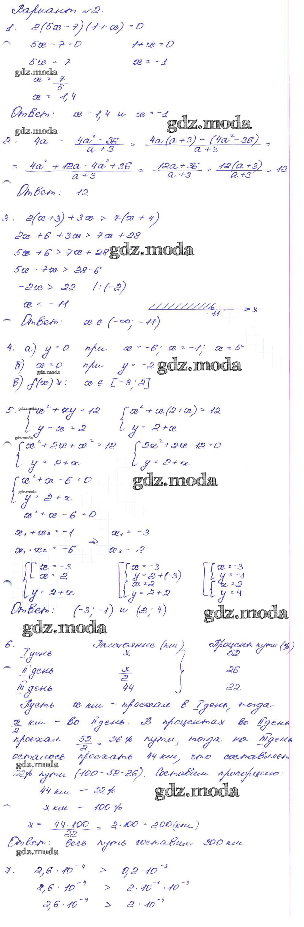 ГДЗ решение к заданию № Вариант-2 Алгебра 9 класс сборник заданий Кузнецова Л.В. Дрофа 2008 ФГОС бесплатно на гдз.мода!