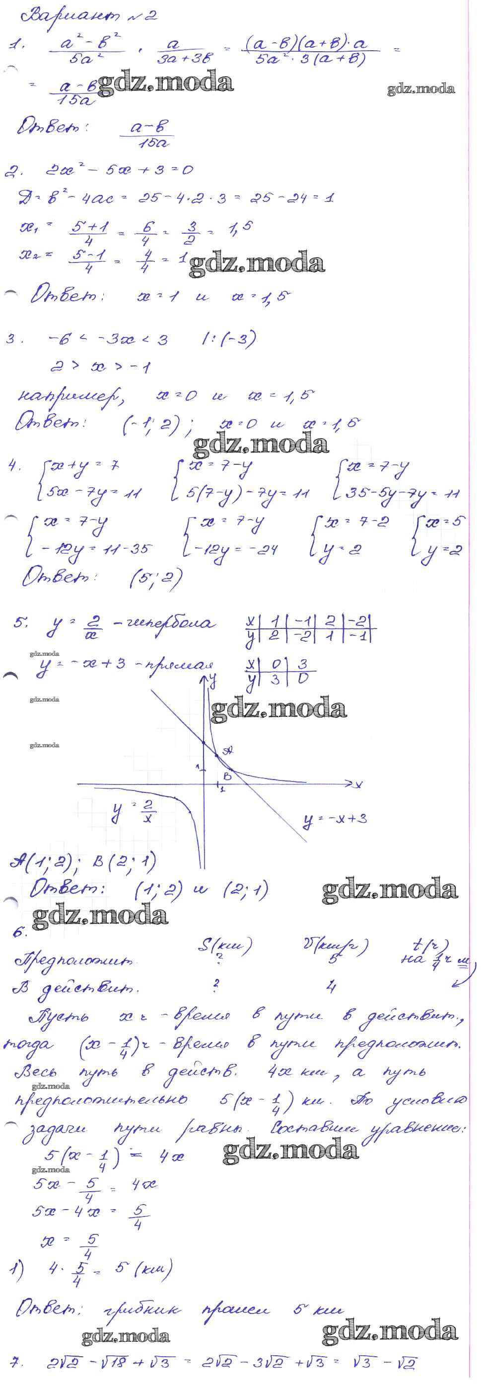 ГДЗ решение к заданию № Вариант-2 Алгебра 9 класс сборник заданий Кузнецова Л.В. Дрофа 2008 ФГОС бесплатно на гдз.мода!