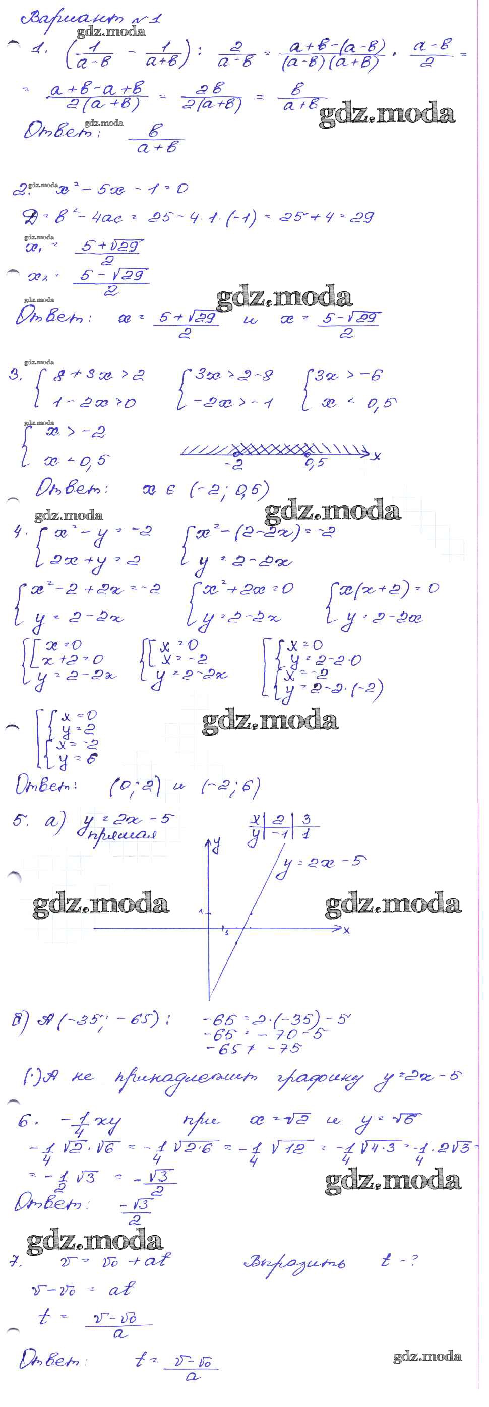 ГДЗ решение к заданию № Вариант-1 Алгебра 9 класс сборник заданий Кузнецова Л.В. Дрофа 2008 ФГОС бесплатно на гдз.мода!