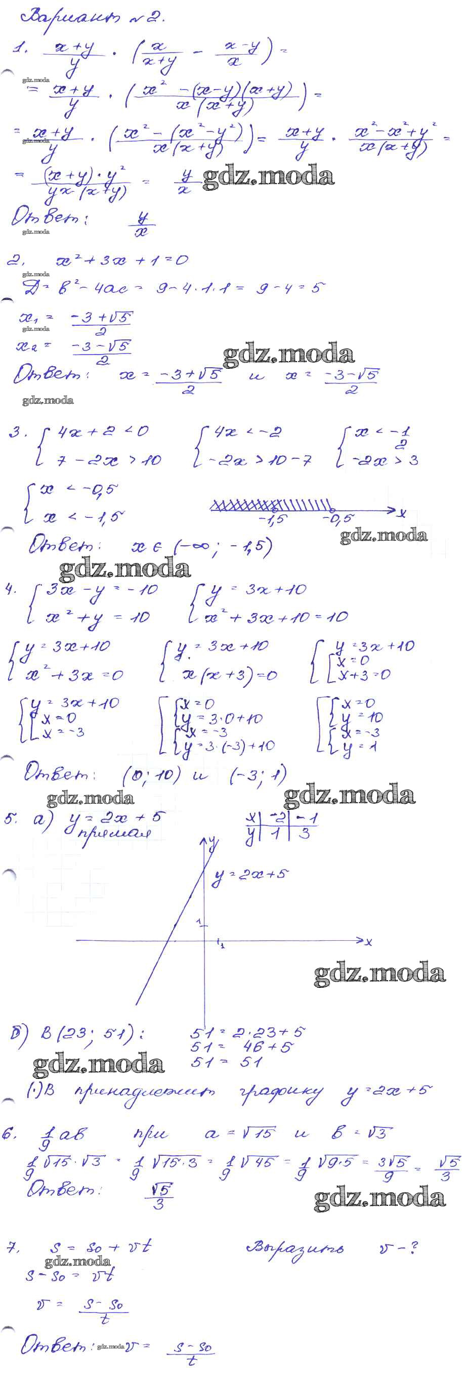 ОТВЕТ на задание № Вариант-2 Сборник заданий по Алгебре 9 класс Кузнецова