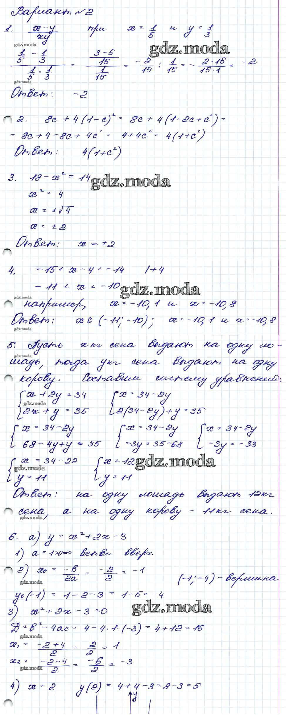 ГДЗ решение к заданию № Вариант-2 Алгебра 9 класс сборник заданий Кузнецова Л.В. Дрофа 2008 ФГОС бесплатно на гдз.мода!