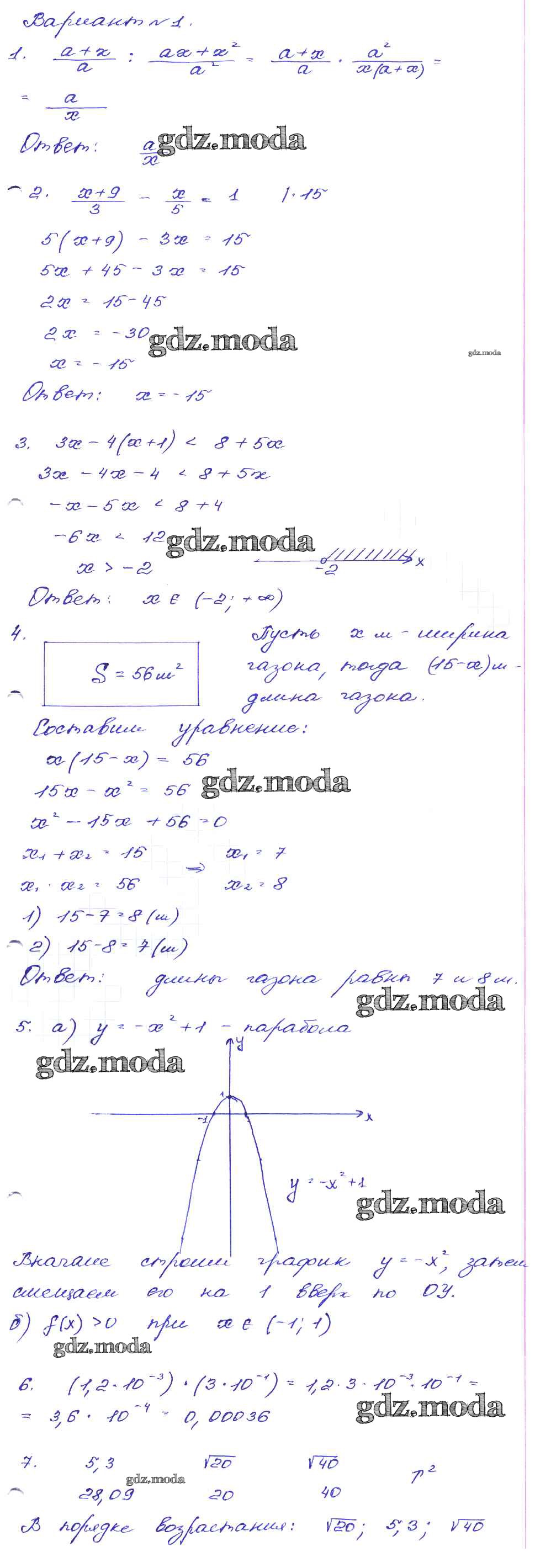 ГДЗ решение к заданию № Вариант-1 Алгебра 9 класс сборник заданий Кузнецова Л.В. Дрофа 2008 ФГОС бесплатно на гдз.мода!