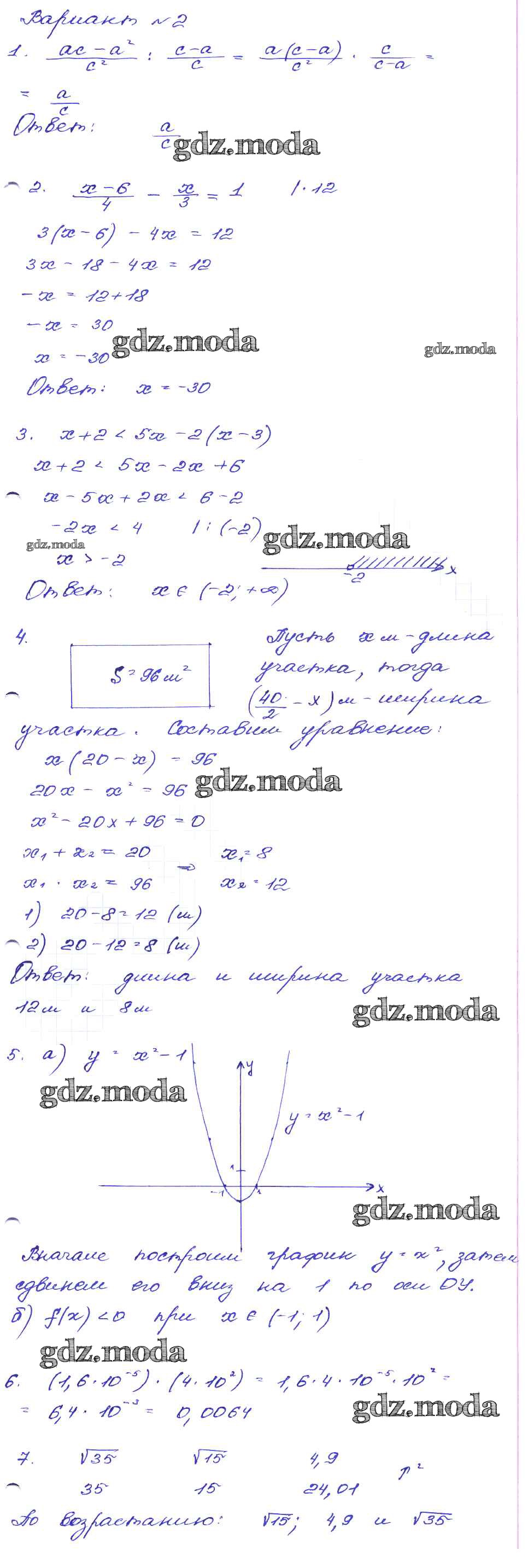 ОТВЕТ на задание № Вариант-2 Сборник заданий по Алгебре 9 класс Кузнецова