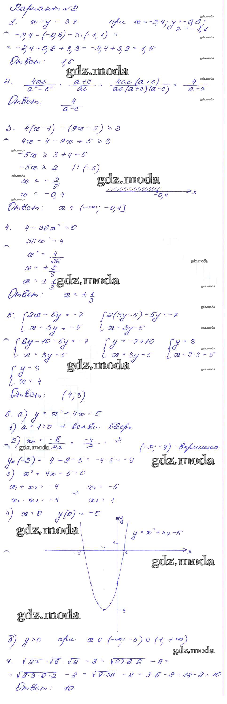 ГДЗ решение к заданию № Вариант-2 Алгебра 9 класс сборник заданий Кузнецова Л.В. Дрофа 2008 ФГОС бесплатно на гдз.мода!