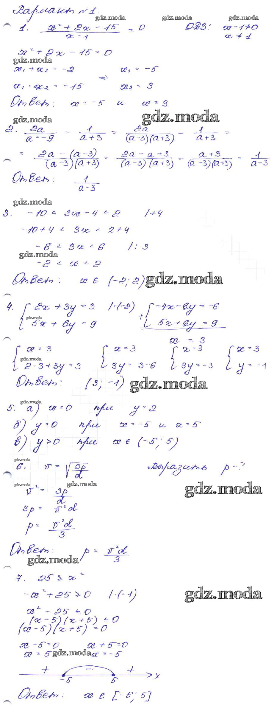 ГДЗ решение к заданию № Вариант-1 Алгебра 9 класс сборник заданий Кузнецова Л.В. Дрофа 2008 ФГОС бесплатно на гдз.мода!