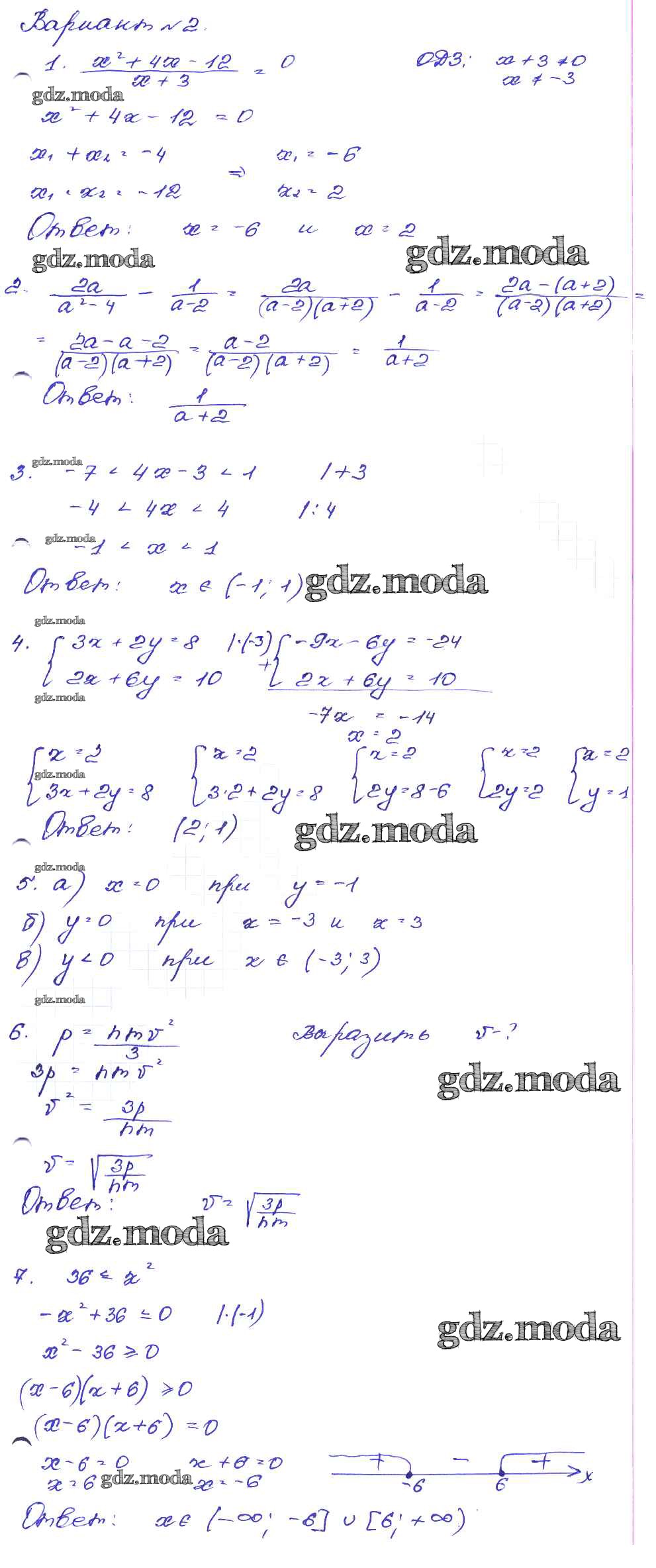 ОТВЕТ на задание № Вариант-2 Сборник заданий по Алгебре 9 класс Кузнецова