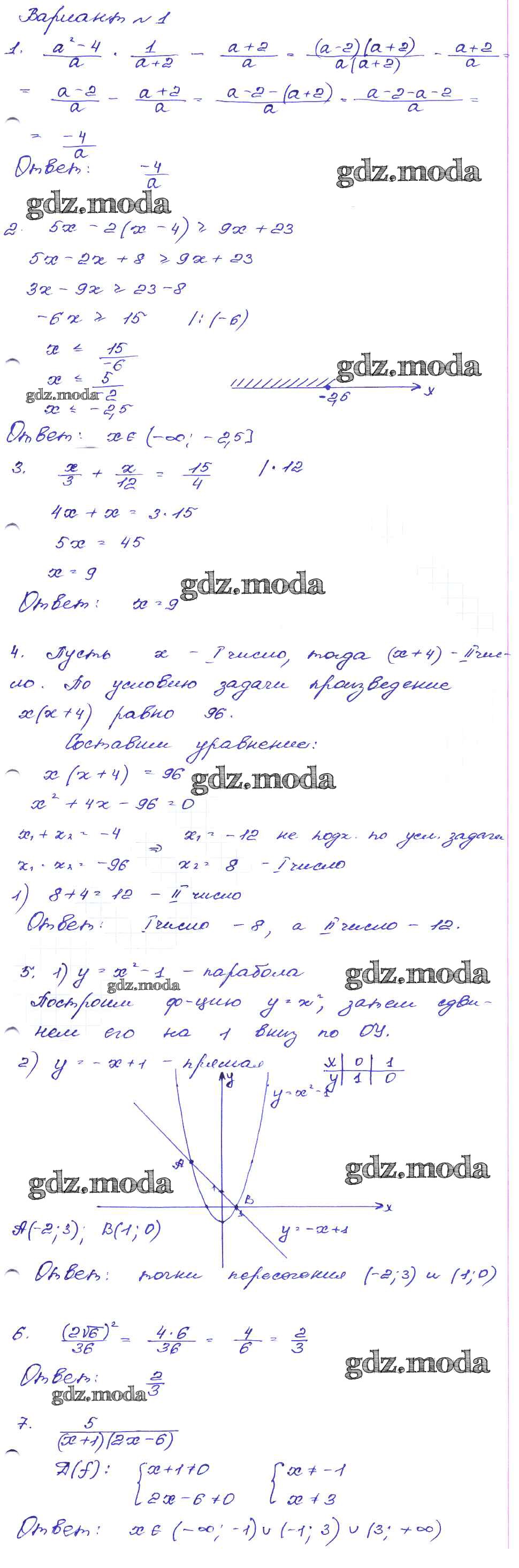 ГДЗ решение к заданию № Вариант-1 Алгебра 9 класс сборник заданий Кузнецова Л.В. Дрофа 2008 ФГОС бесплатно на гдз.мода!