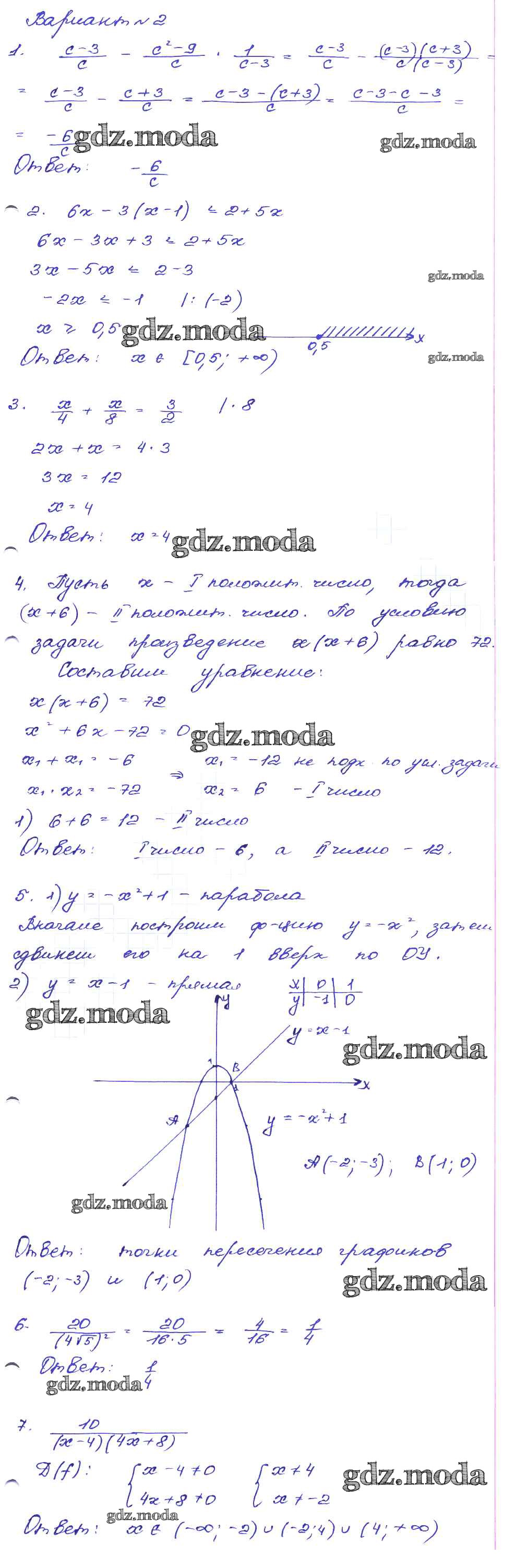 ОТВЕТ на задание № Вариант-2 Сборник заданий по Алгебре 9 класс Кузнецова