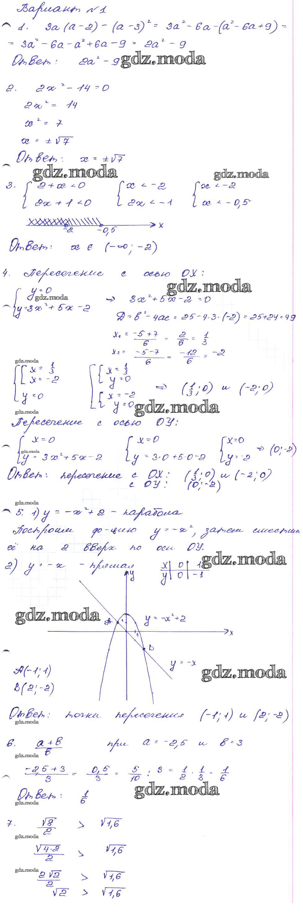 ГДЗ решение к заданию № Вариант-1 Алгебра 9 класс сборник заданий Кузнецова Л.В. Дрофа 2008 ФГОС бесплатно на гдз.мода!
