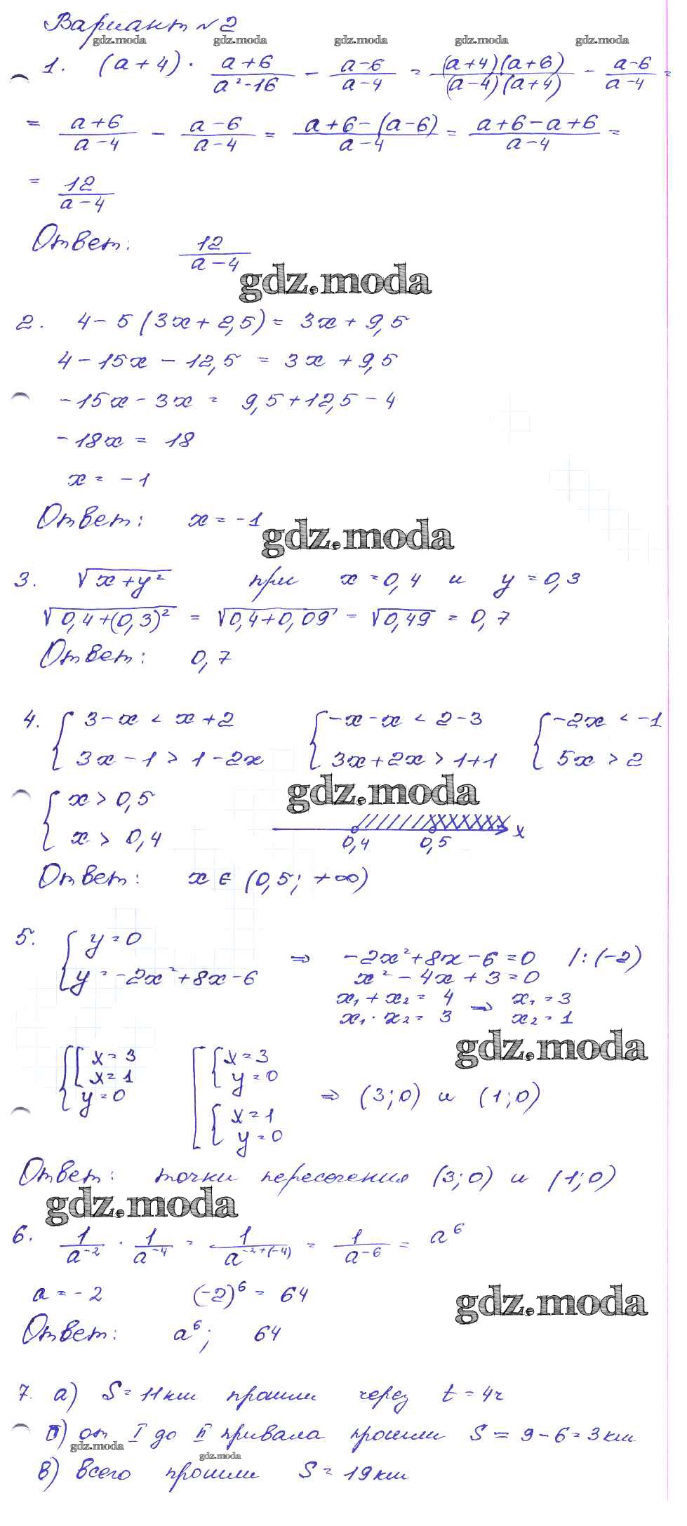 ГДЗ решение к заданию № Вариант-2 Алгебра 9 класс сборник заданий Кузнецова Л.В. Дрофа 2008 ФГОС бесплатно на гдз.мода!