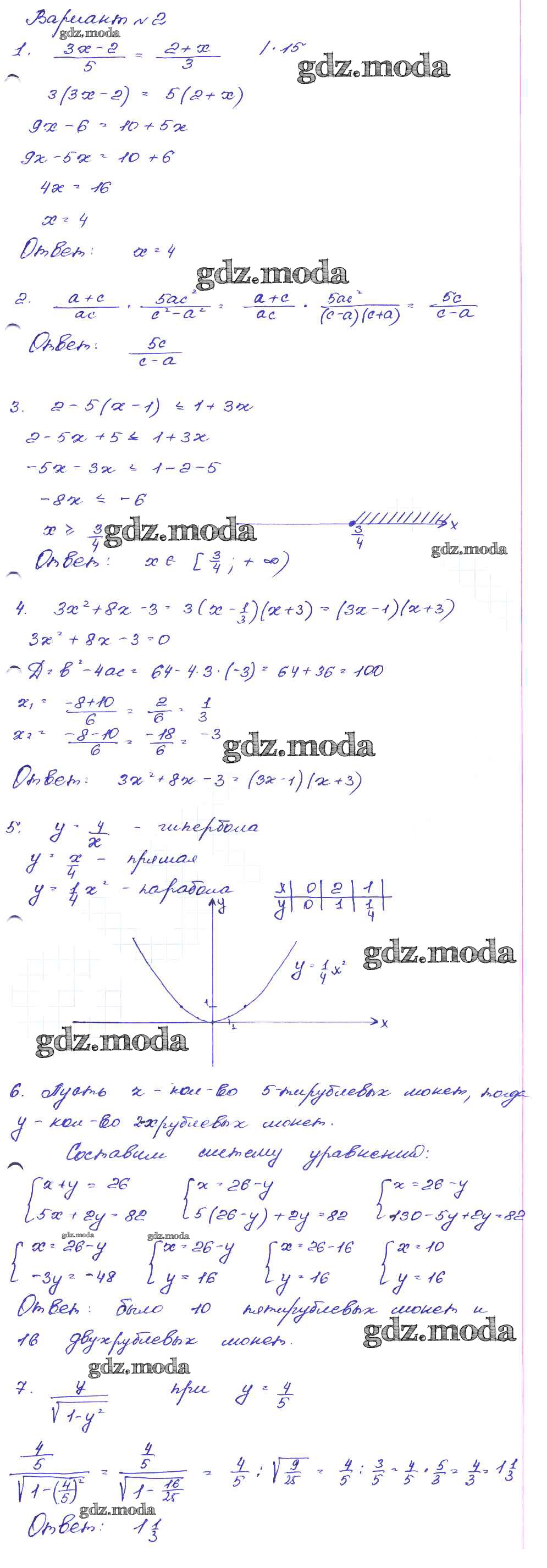 ОТВЕТ на задание № Вариант-2 Сборник заданий по Алгебре 9 класс Кузнецова