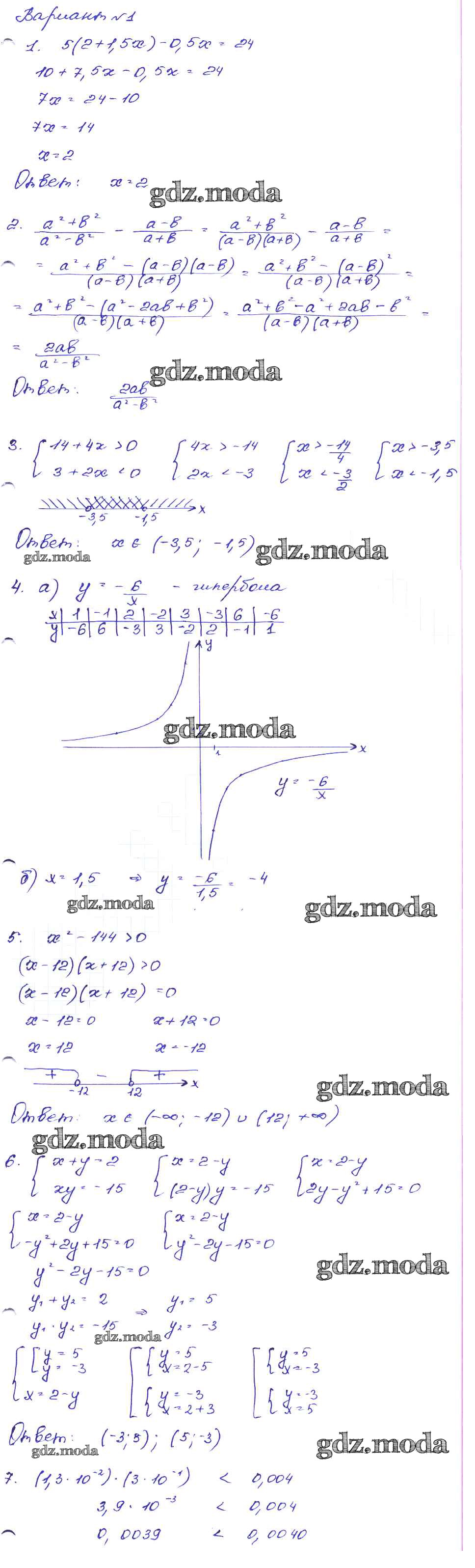 ГДЗ решение к заданию № Вариант-1 Алгебра 9 класс сборник заданий Кузнецова Л.В. Дрофа 2008 ФГОС бесплатно на гдз.мода!