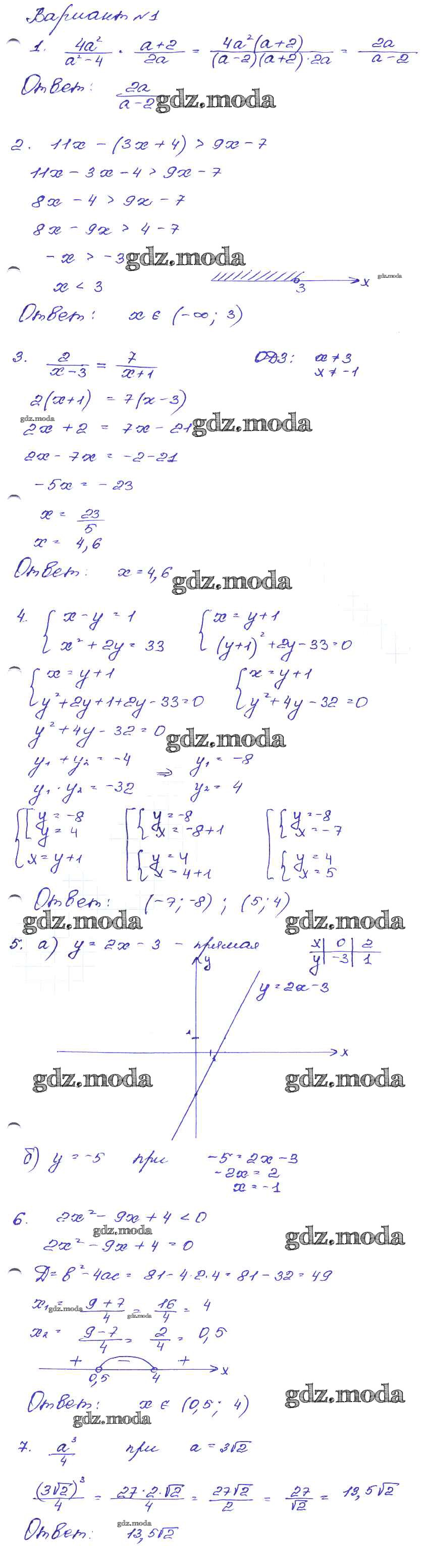 ГДЗ решение к заданию № Вариант-1 Алгебра 9 класс сборник заданий Кузнецова Л.В. Дрофа 2008 ФГОС бесплатно на гдз.мода!