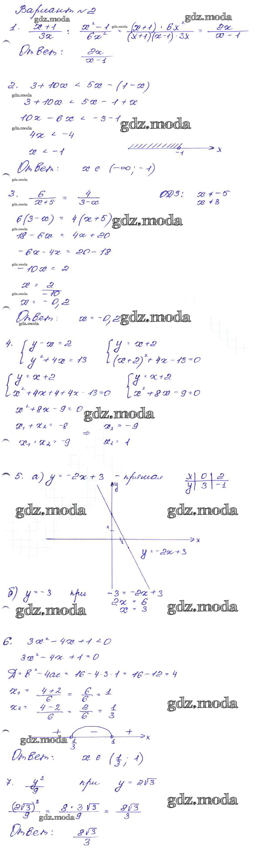 ГДЗ решение к заданию № Вариант-2 Алгебра 9 класс сборник заданий Кузнецова Л.В. Дрофа 2008 ФГОС бесплатно на гдз.мода!