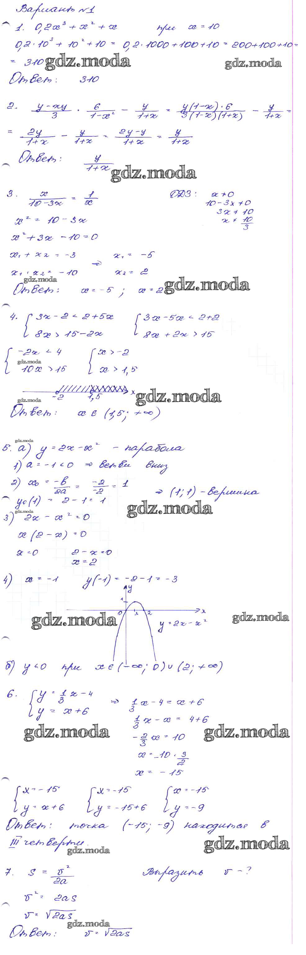 ГДЗ решение к заданию № Вариант-1 Алгебра 9 класс сборник заданий Кузнецова Л.В. Дрофа 2008 ФГОС бесплатно на гдз.мода!