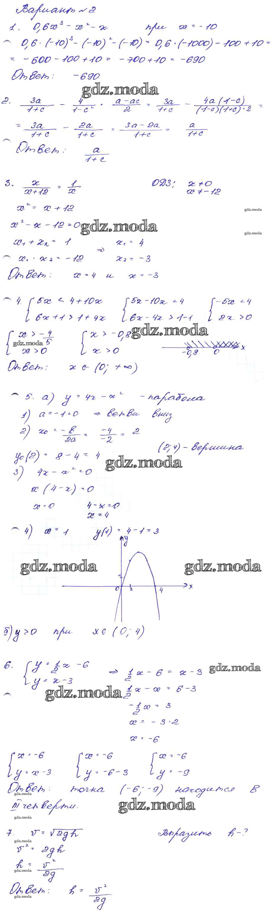 ГДЗ решение к заданию № Вариант-2 Алгебра 9 класс сборник заданий Кузнецова Л.В. Дрофа 2008 ФГОС бесплатно на гдз.мода!