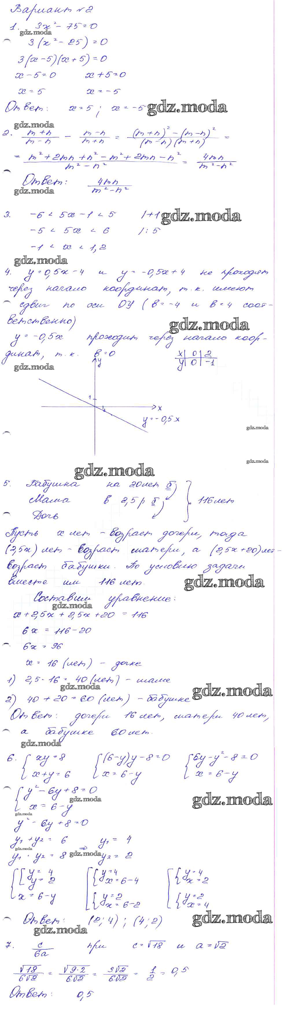 ОТВЕТ на задание № Вариант-2 Сборник заданий по Алгебре 9 класс Кузнецова