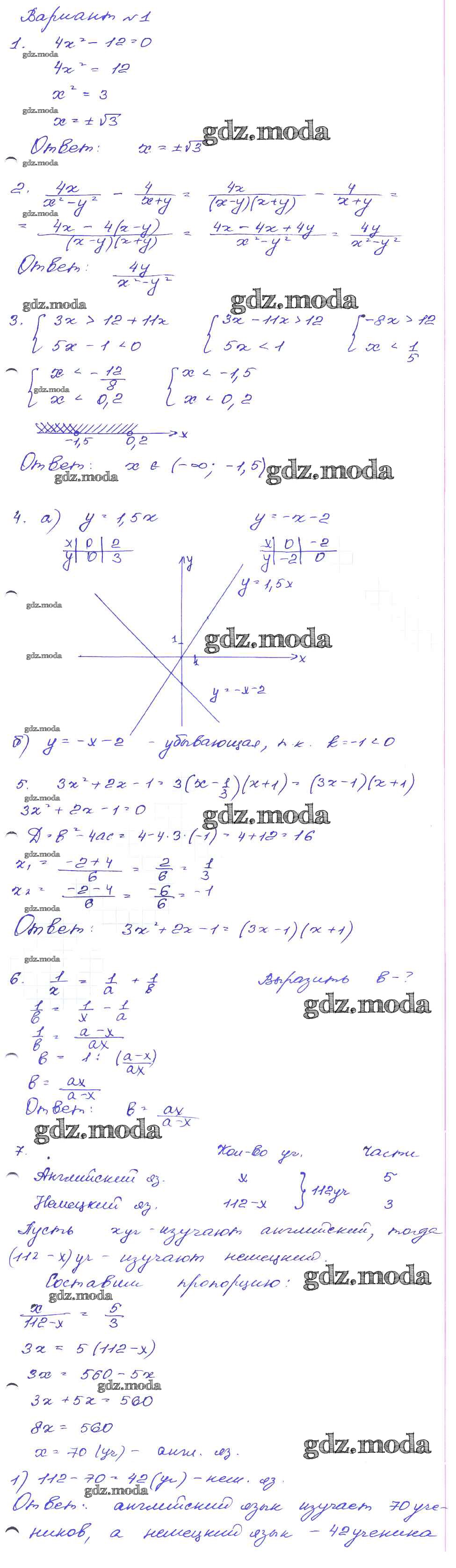 ОТВЕТ на задание № Вариант-1 Сборник заданий по Алгебре 9 класс Кузнецова