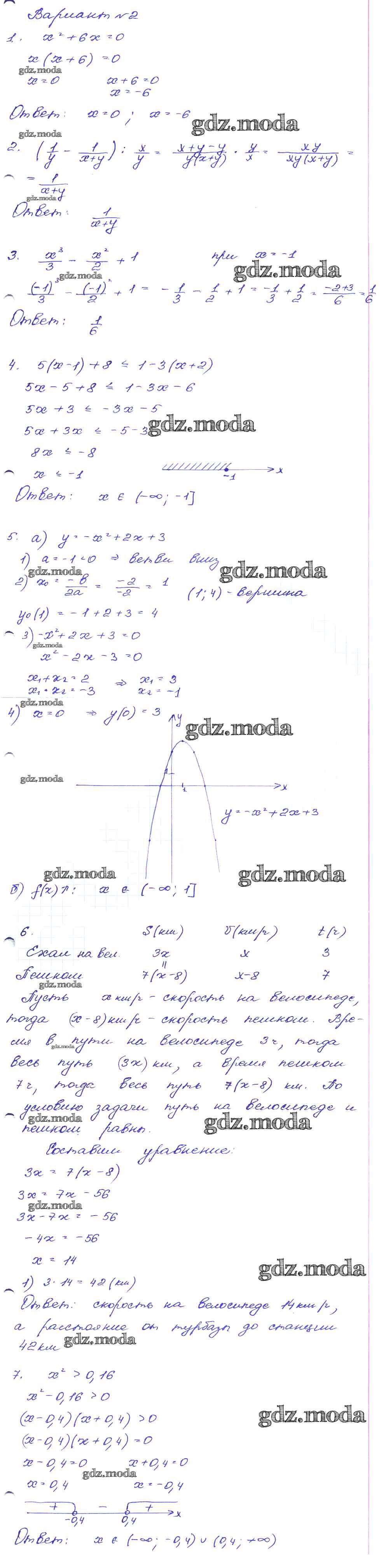ОТВЕТ на задание № Вариант-2 Сборник заданий по Алгебре 9 класс Кузнецова