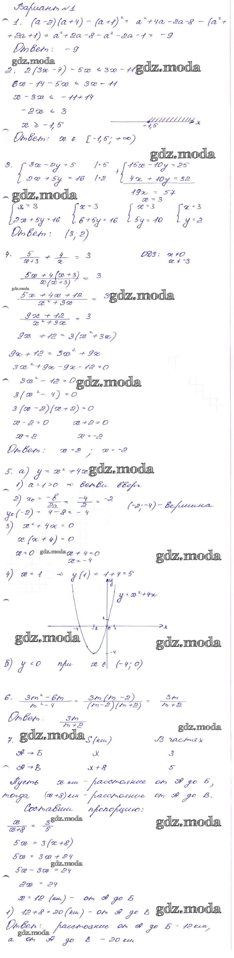 ГДЗ решение к заданию № Вариант-1 Алгебра 9 класс сборник заданий Кузнецова Л.В. Дрофа 2008 ФГОС бесплатно на гдз.мода!