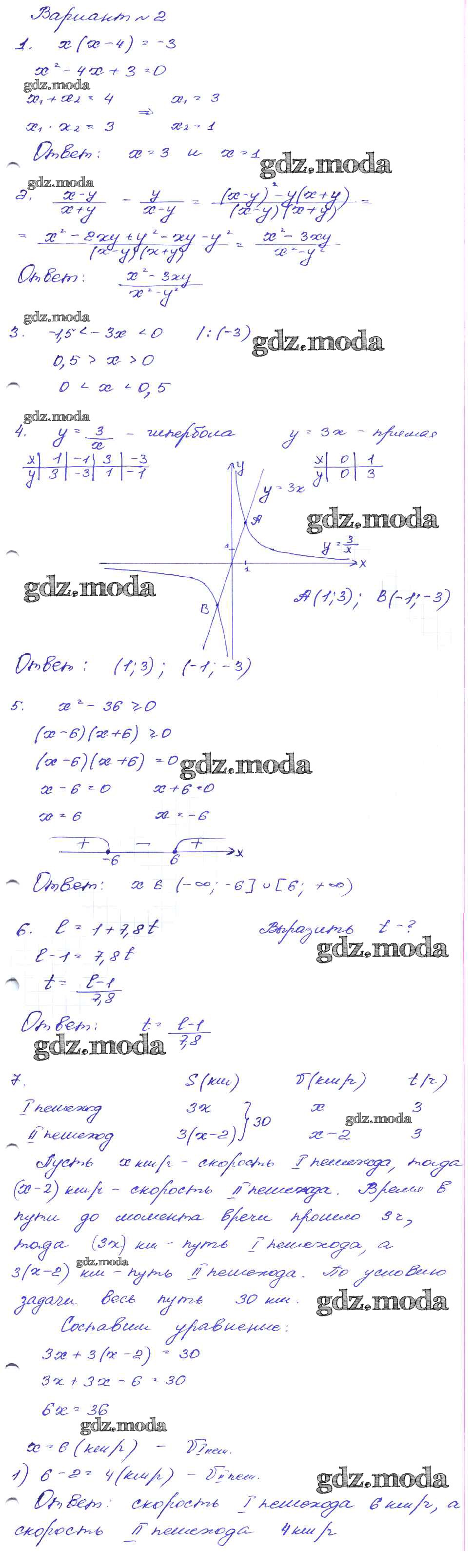 ОТВЕТ на задание № Вариант-2 Сборник заданий по Алгебре 9 класс Кузнецова