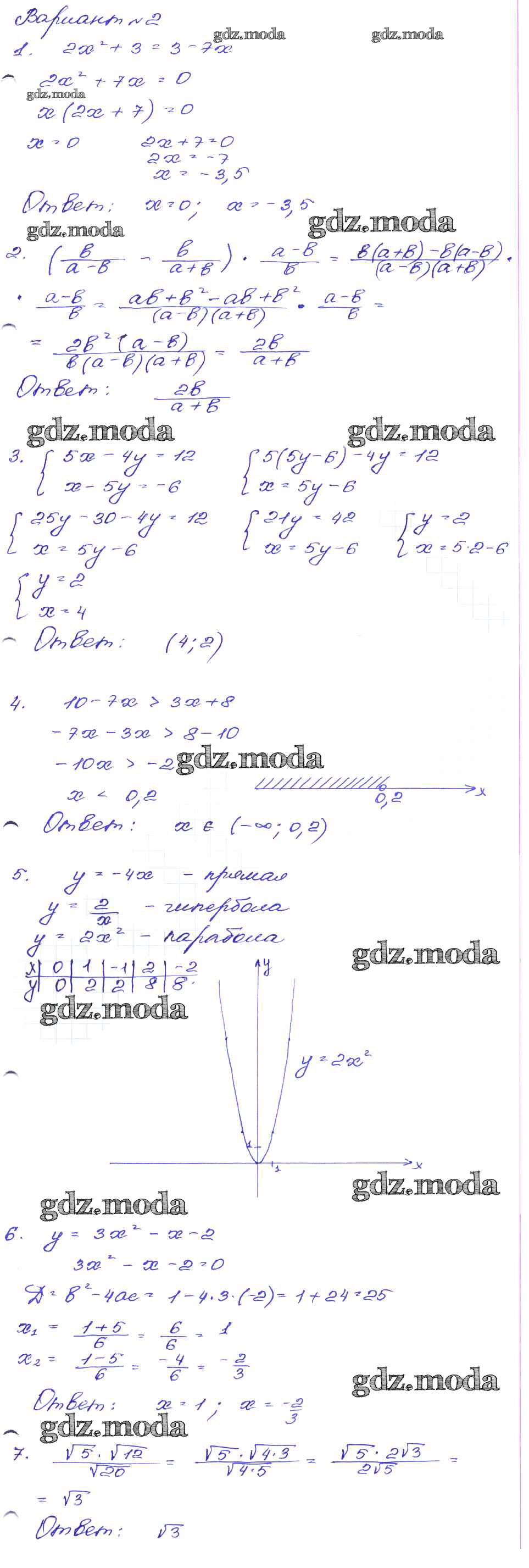 ГДЗ решение к заданию № Вариант-2 Алгебра 9 класс сборник заданий Кузнецова Л.В. Дрофа 2008 ФГОС бесплатно на гдз.мода!