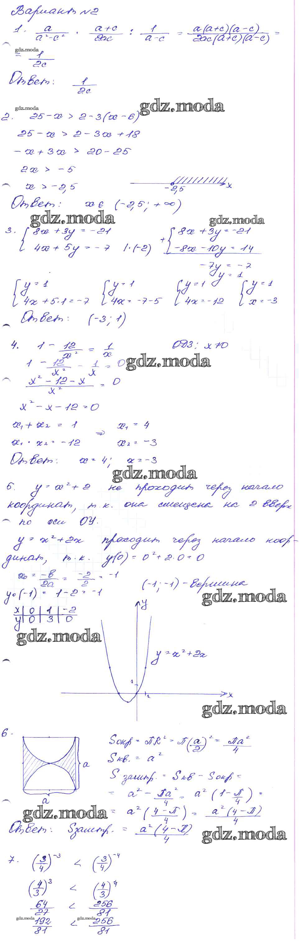ОТВЕТ на задание № Вариант-2 Сборник заданий по Алгебре 9 класс Кузнецова