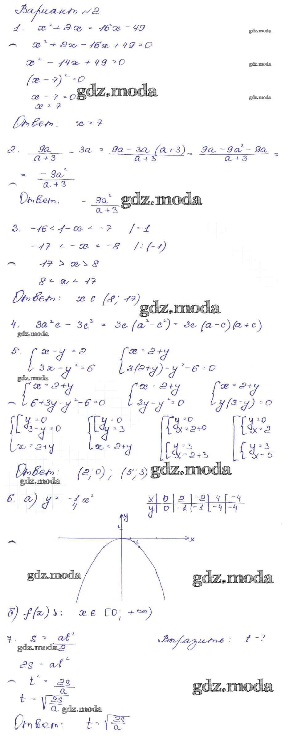 ГДЗ решение к заданию № Вариант-2 Алгебра 9 класс сборник заданий Кузнецова Л.В. Дрофа 2008 ФГОС бесплатно на гдз.мода!