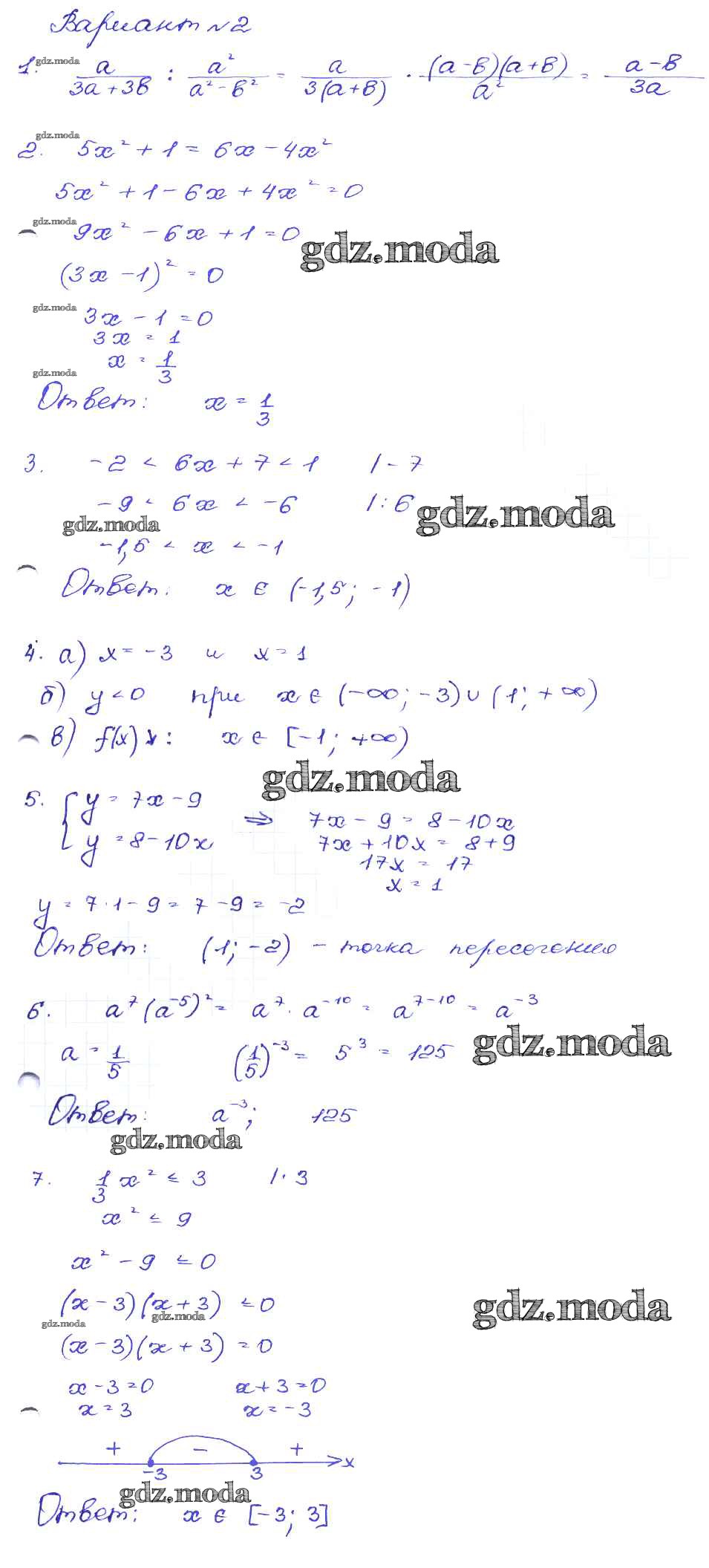 ГДЗ решение к заданию № Вариант-2 Алгебра 9 класс сборник заданий Кузнецова Л.В. Дрофа 2008 ФГОС бесплатно на гдз.мода!
