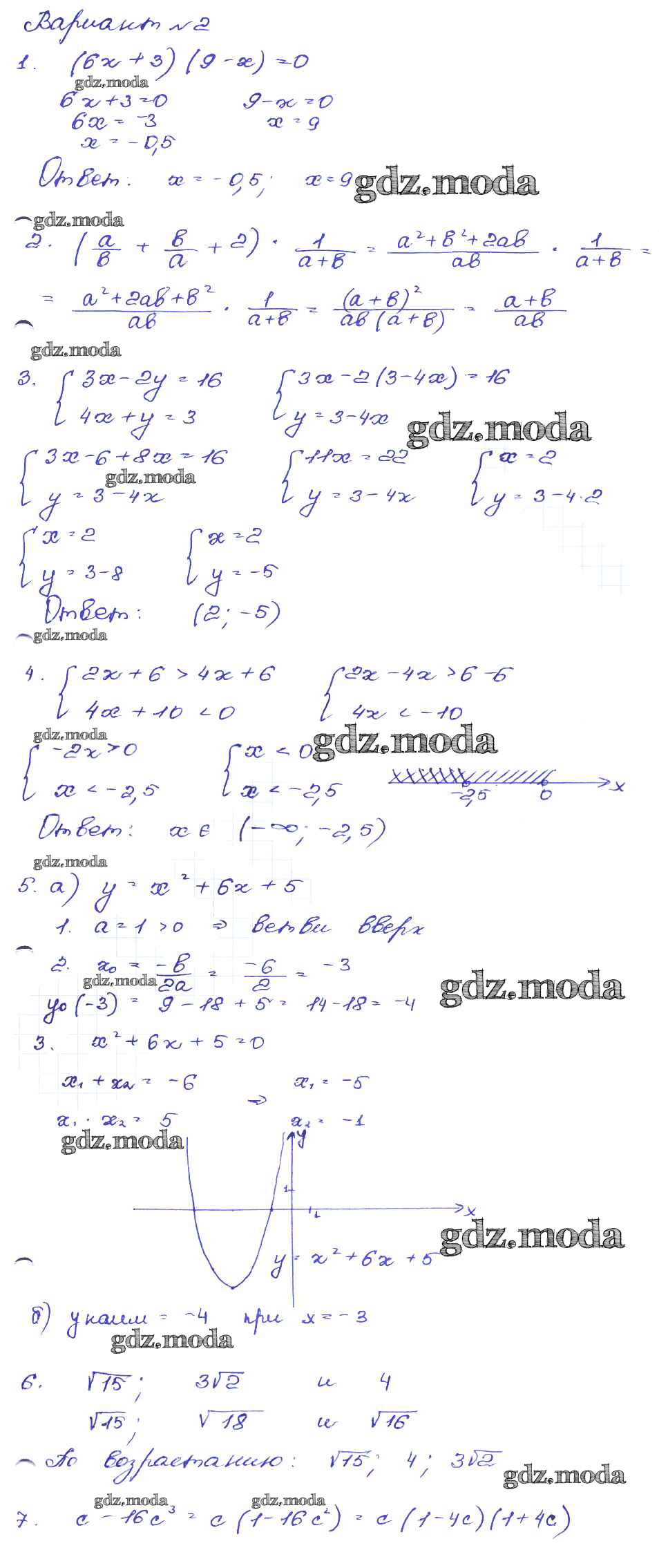 ОТВЕТ на задание № Вариант-2 Сборник заданий по Алгебре 9 класс Кузнецова