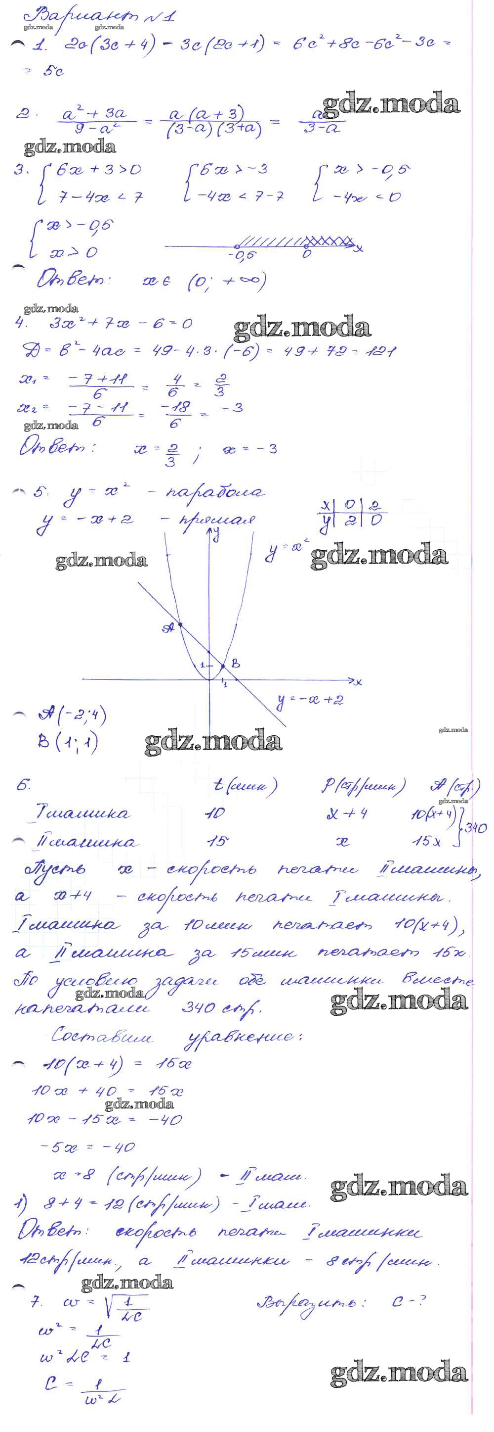 ОТВЕТ на задание № Вариант-1 Сборник заданий по Алгебре 9 класс Кузнецова