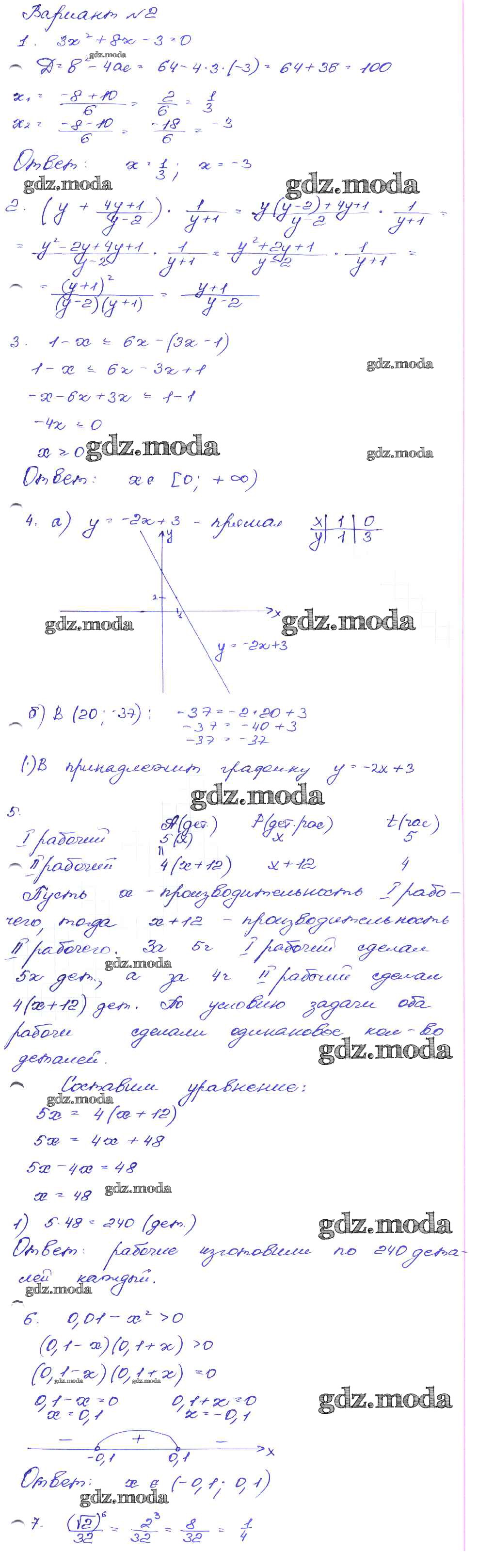 ОТВЕТ на задание № Вариант-2 Сборник заданий по Алгебре 9 класс Кузнецова