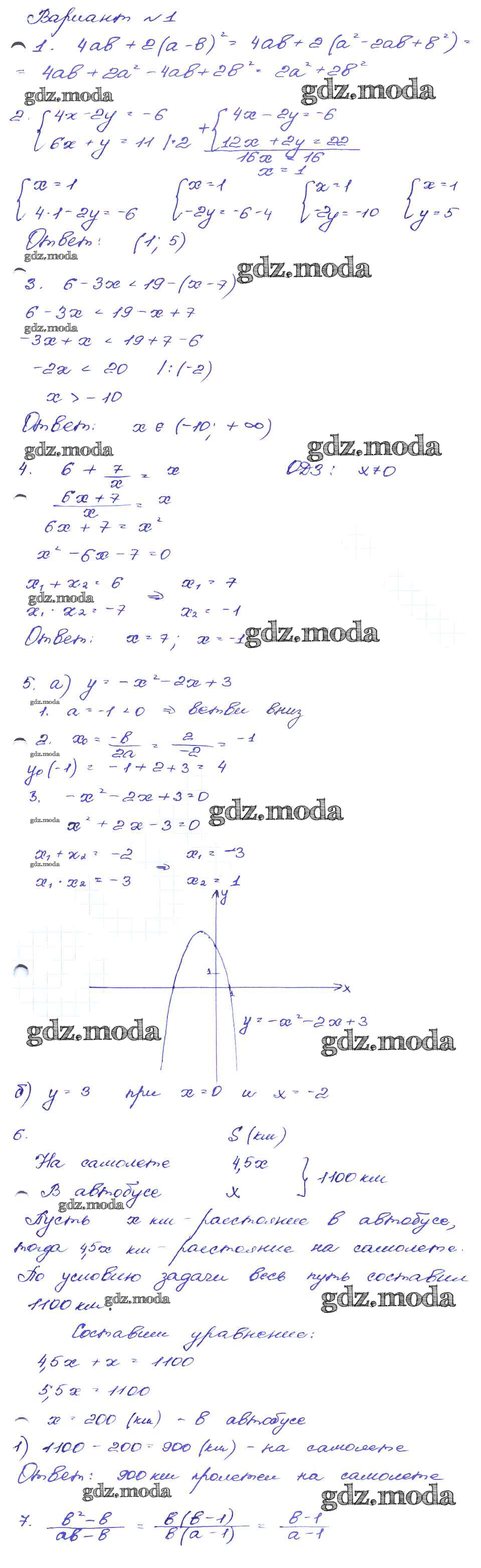 ГДЗ решение к заданию № Вариант-1 Алгебра 9 класс сборник заданий Кузнецова Л.В. Дрофа 2008 ФГОС бесплатно на гдз.мода!