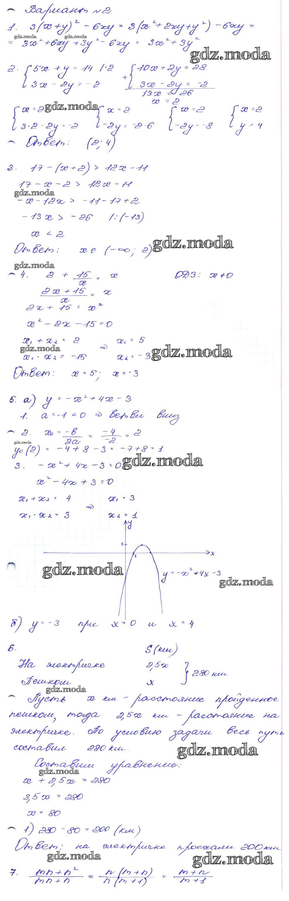ОТВЕТ на задание № Вариант-2 Сборник заданий по Алгебре 9 класс Кузнецова