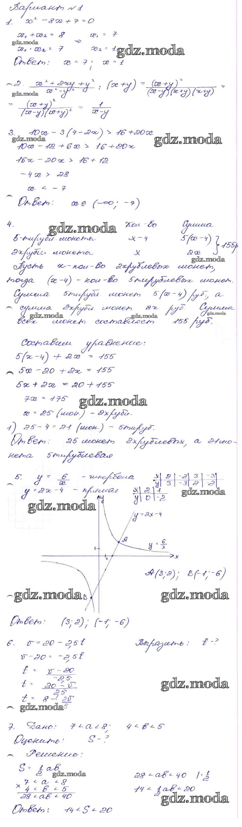 ГДЗ решение к заданию № Вариант-1 Алгебра 9 класс сборник заданий Кузнецова Л.В. Дрофа 2008 ФГОС бесплатно на гдз.мода!