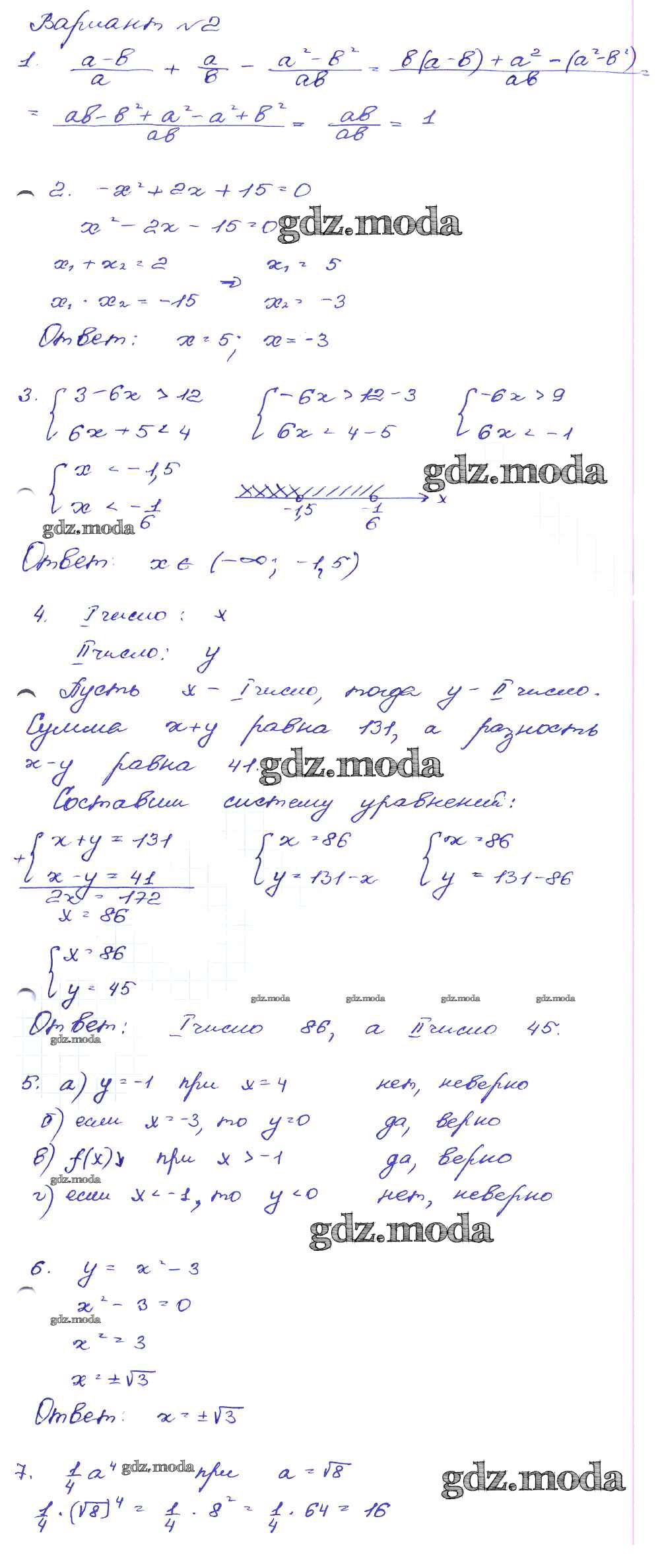 ОТВЕТ на задание № Вариант-2 Сборник заданий по Алгебре 9 класс Кузнецова