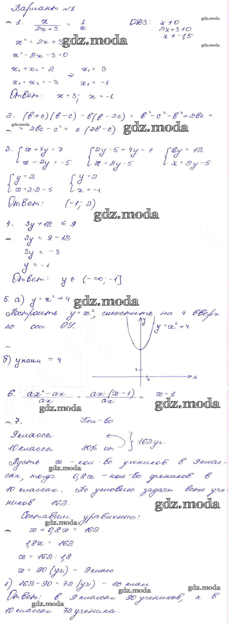 ГДЗ решение к заданию № Вариант-1 Алгебра 9 класс сборник заданий Кузнецова Л.В. Дрофа 2008 ФГОС бесплатно на гдз.мода!