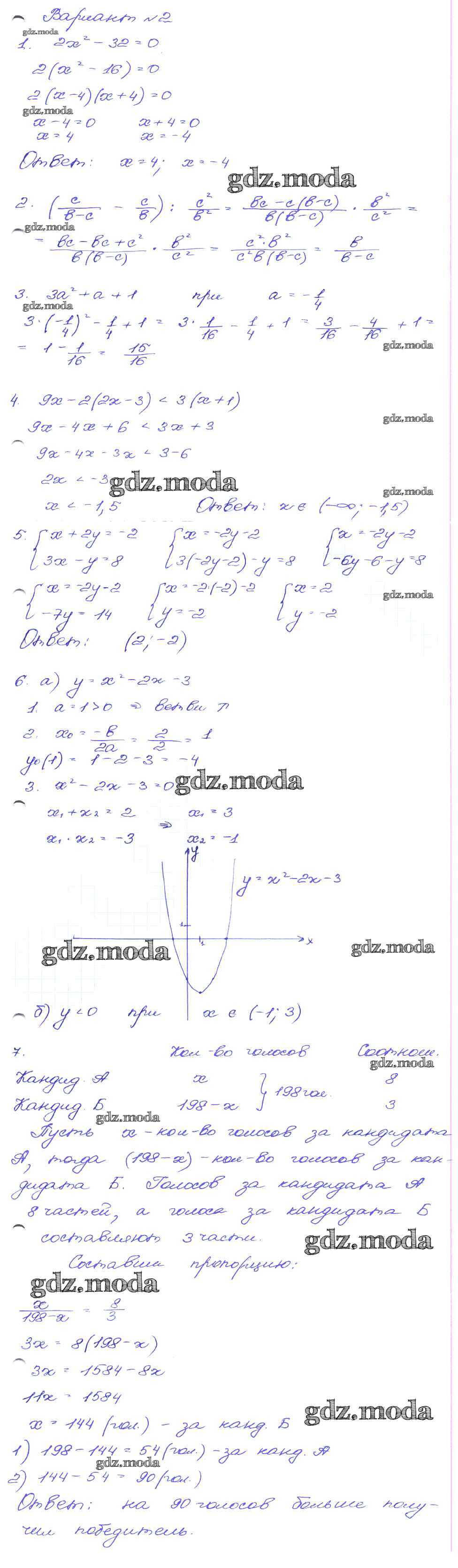 ГДЗ решение к заданию № Вариант-2 Алгебра 9 класс сборник заданий Кузнецова Л.В. Дрофа 2008 ФГОС бесплатно на гдз.мода!