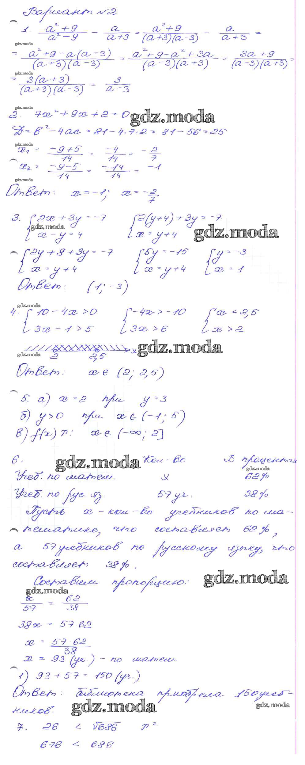 ГДЗ решение к заданию № Вариант-2 Алгебра 9 класс сборник заданий Кузнецова Л.В. Дрофа 2008 ФГОС бесплатно на гдз.мода!