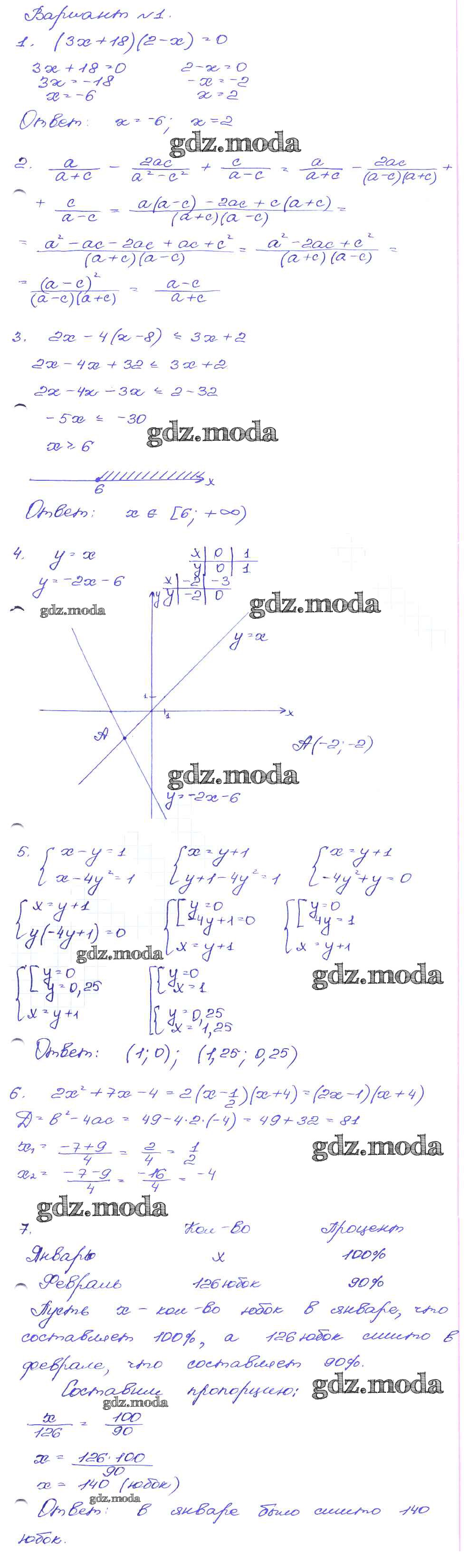 ГДЗ решение к заданию № Вариант-1 Алгебра 9 класс сборник заданий Кузнецова Л.В. Дрофа 2008 ФГОС бесплатно на гдз.мода!