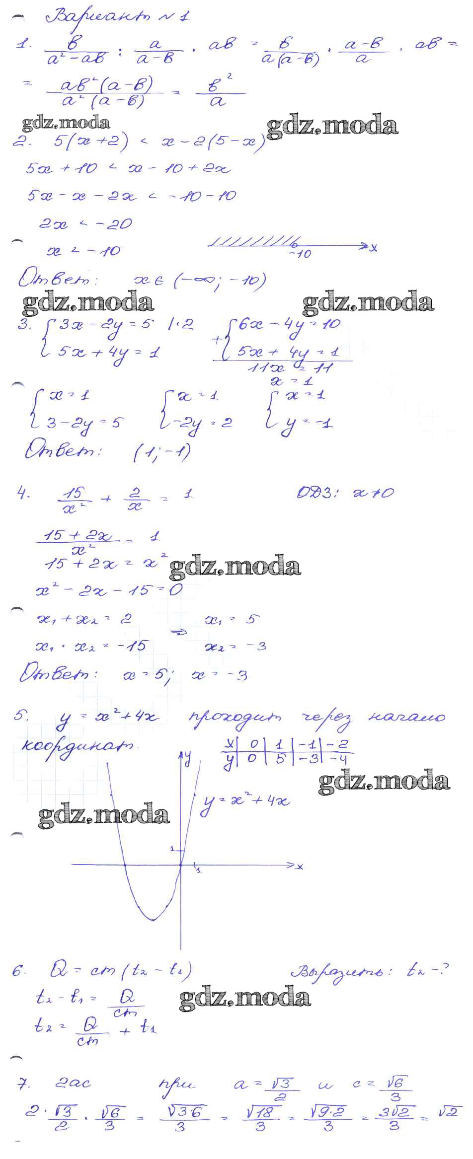 ГДЗ решение к заданию № Вариант-1 Алгебра 9 класс сборник заданий Кузнецова Л.В. Дрофа 2008 ФГОС бесплатно на гдз.мода!